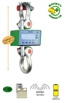 Professional digital dynamometer. Simple and reliable, to be put into use in industrial environments. Thanks to its compact size, the dynamometer brings a reduction in the height of the load and the crane. All versions are certified. Are remote-controlled on request and connected to the printer via radial waves. It works with the internal power supply, rechargeable batteries, and battery life of up to 40 days.