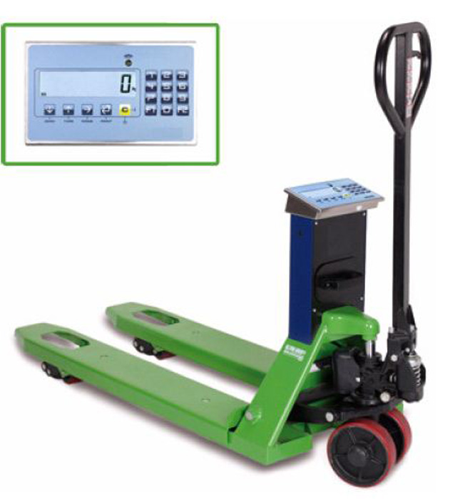 Transpalet with electronic scales integrated, easy to use. Equipped with four weighing sensors that allow to obtain greater precision of weight, the weight indicator are highly functional, with large screen mode that allows you to read optimal weight even in poor lighting conditions