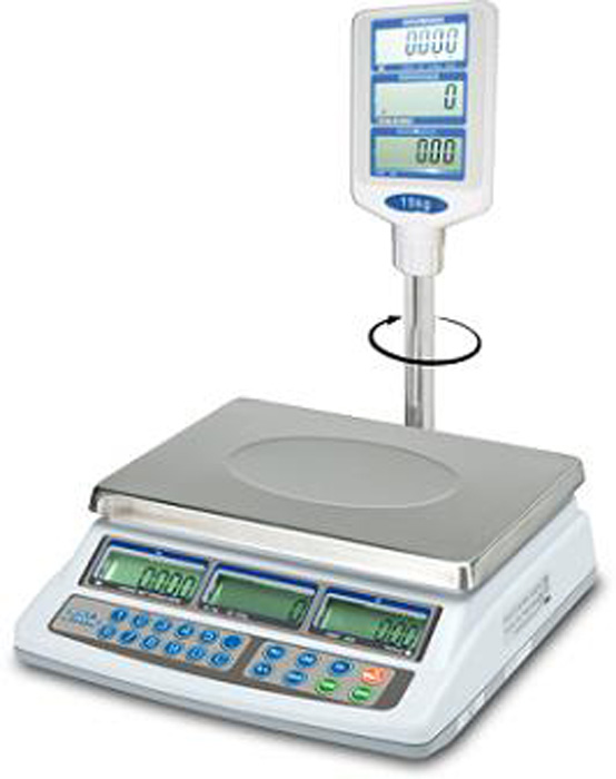 Electronic scale, more practical for commercial use. Solid and ergonomic. Dual screen, connected to the printer and store up to 15 precursor weighing.